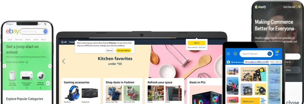 At Ecomm Nexus, we turn online marketplaces into growth engines for your business. Our team of specialists helps you thrive on Amazon, Shopify, Facebook Marketplace, and Walmart, streamlining sales, optimizing product listings, and boosting your competitive edge. With minimal investment and unlimited possibilities, e-commerce is one of today’s smartest business opportunities.